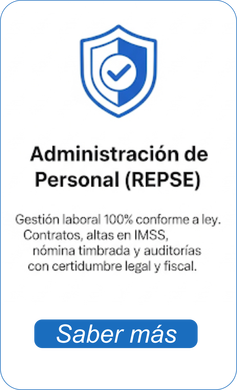 Con nuestro modelo de administración de personal REPSE garantizamos cumplimiento legal y fiscal, reduciendo riesgos laborales y asegurando que tu planta opere siempre dentro del marco normativo.