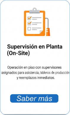 Nuestros equipos de supervisión en planta aseguran disciplina laboral y reemplazos inmediatos en caso de ausencias, manteniendo siempre la productividad y cumpliendo los más altos estándares de calidad internacional.